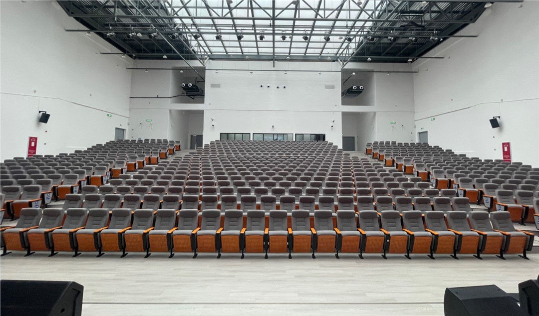 500人报告厅纵深较长,单一的点声源无法满足均匀覆盖。本方案采用“主扩+超低+返听+补声”的立体阵列布局。