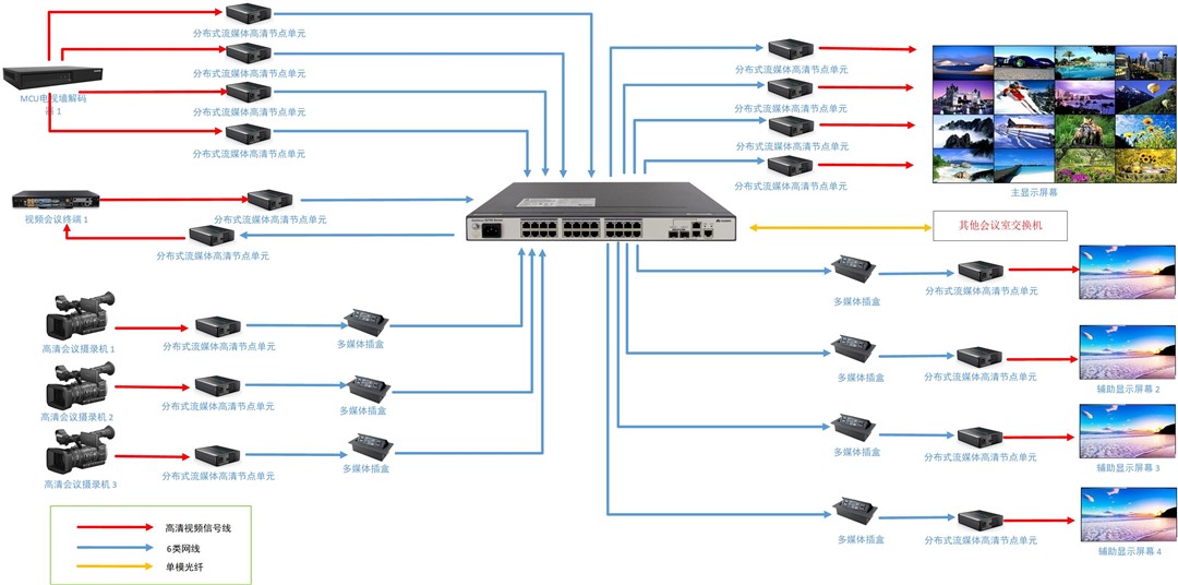 什么是KVM分布式系统? KVM分布式系统(Keyboard, Video, Mouse),是一种基于IP网络架构的技术。不同于传统模拟KVM受限于线缆长度和端口数量,分布式系统将音视频信号和控制信号数字化,通过编解码器(节点)在标准的千兆或万兆网络中传输。它将信号源(服务器/工作站)与操作端(显示器/键鼠)在物理上彻底分离,构建了一个高度灵活的信息交互平台。