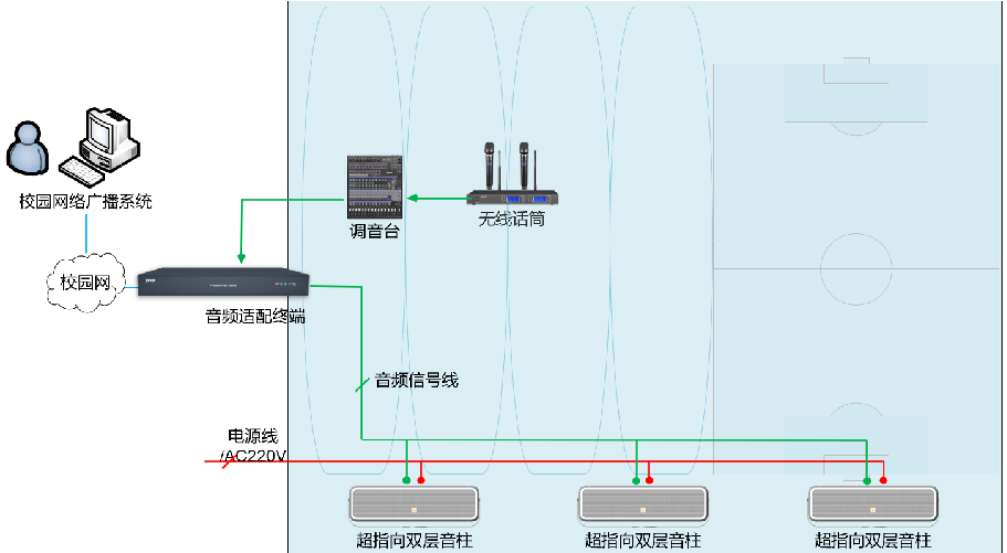 系统布线少,从控制机房到前端设备只需布设一条电源线和一条音频信号线,有效简化系统工程。支持项目改造可利旧使用操场已有的广播线路,降低成本。